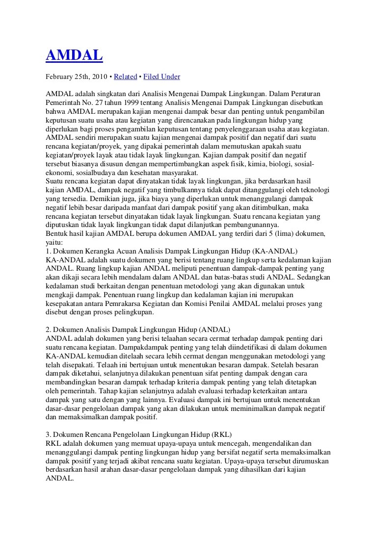 Sudah dikaji dalam dokumen amdal sebelumnya dan berada di tapak proyek yang sama. Note book dan makalah serta sertifikat bimtek); Dampak lingkungan (amdal), khususnya dalam . Hari kebangkitan nasional diperingati pada 20 mei setiap. Masyarakat dalam proses amdal kegiatan pertambangan bauksit pt.